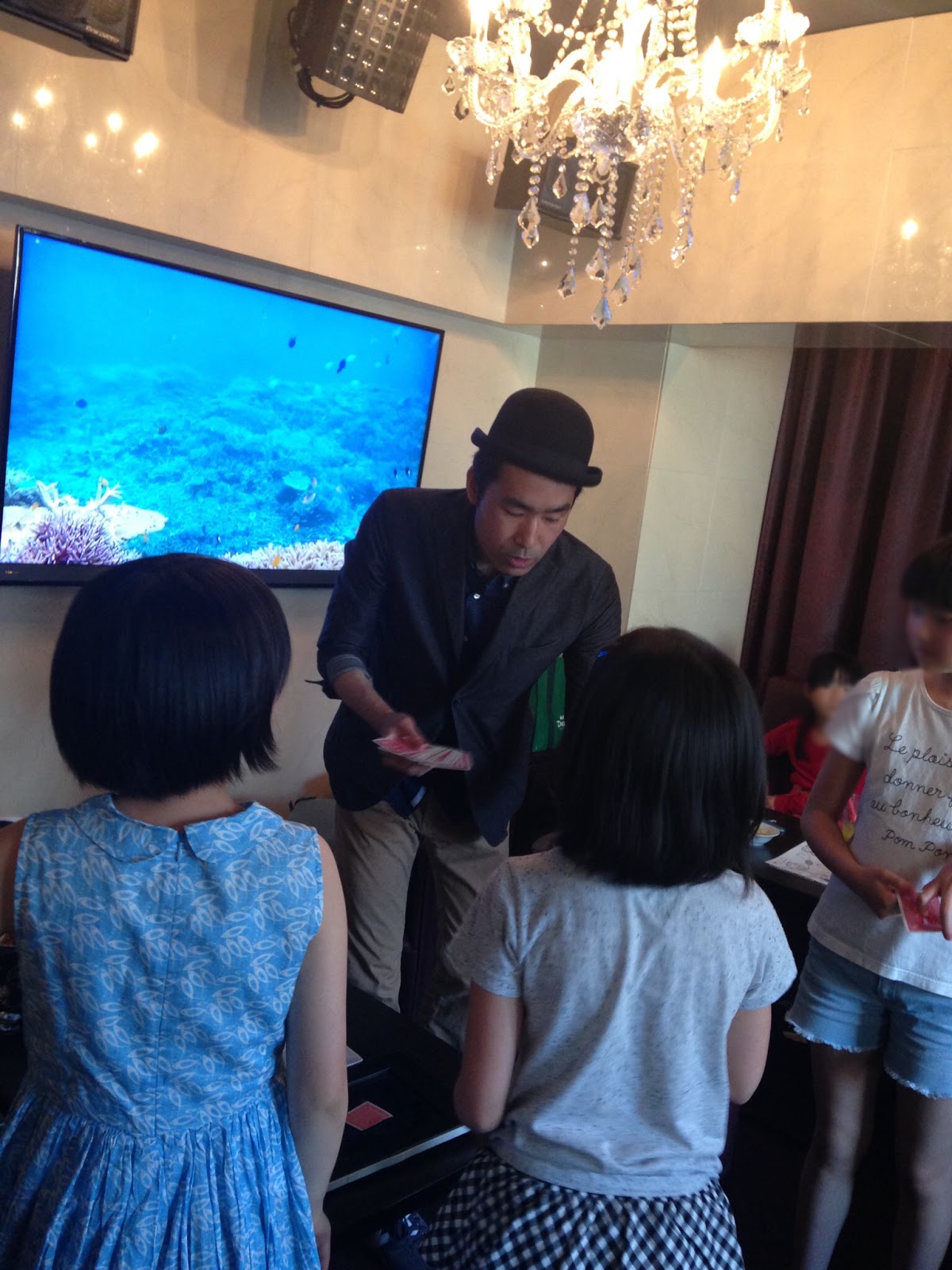 - 親御さんも含めて全員参加してもらった1週間の運勢が良くなるカードマジック。2人以外成功しました。かなりの成功率です。